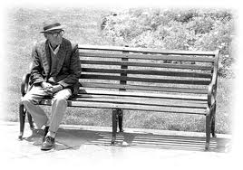پيرمرد روي نيمكت نشسته بود وکلاهش را روي سرش کشيده بود و استراحت